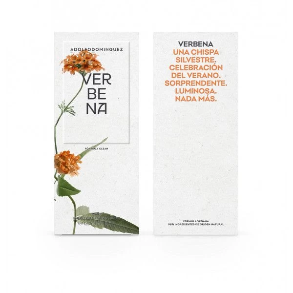 Verbena es la propuesta más sostenible de Adolfo Domínguez: con un 96% de ingredientes de origen natural, todos los ingredientes han sido seleccionados cuidadosamente pensando primero en ti y en el medioambiente.