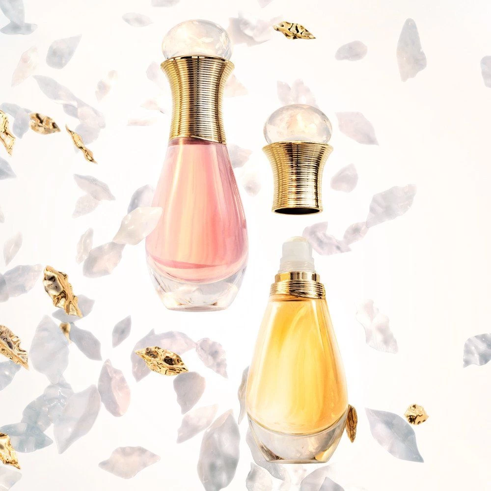 La Eau de toilette J’adore se presenta en un nuevo frasco precioso y compacto. Como un frasco-joya para llevar a todas partes, la Eau de toilette ya se puede transportar en el bolso ocupando poco espacio. Su suave perla se desliza voluptuosamente por el cuello, la muñeca y el escote, desprendiendo con precisión las notas del bouquet floral de J’adore.