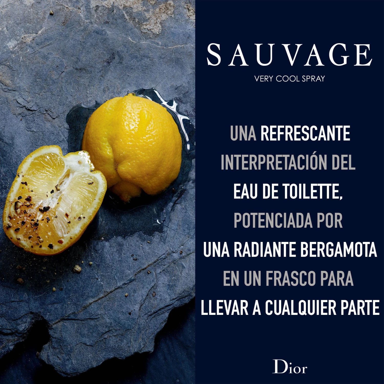 DIOR SAUVAGE VERY COOL SPRAY: Una nueva manera de perfumarse, un gesto masculino, desinhibido. Un frasco irrompible que se puede llevar a todas partes, para perfumarse en cualquier momento del día. Una difusión en forma de bruma a base de aire para un mayor respeto por el medioambiente (Innovación exclusiva de Dior).