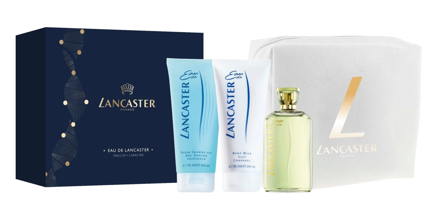 LANCASTER EAU DE LANCASTER SET: Todo un clásico de la perfumería femenina. Eau de Lancaster representa el perfecto equilibrio entre un extraordinario frescor y un gran carácter. Fragancia fresca ideal para cualquier momento del día y de la noche.