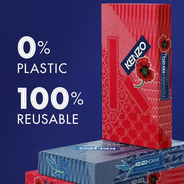 Como homenaje a su fundador, KENZO vuelve a visitar Sashiko, el arte de bordado tradicional japonés, para decorar sus cajas de regalo.