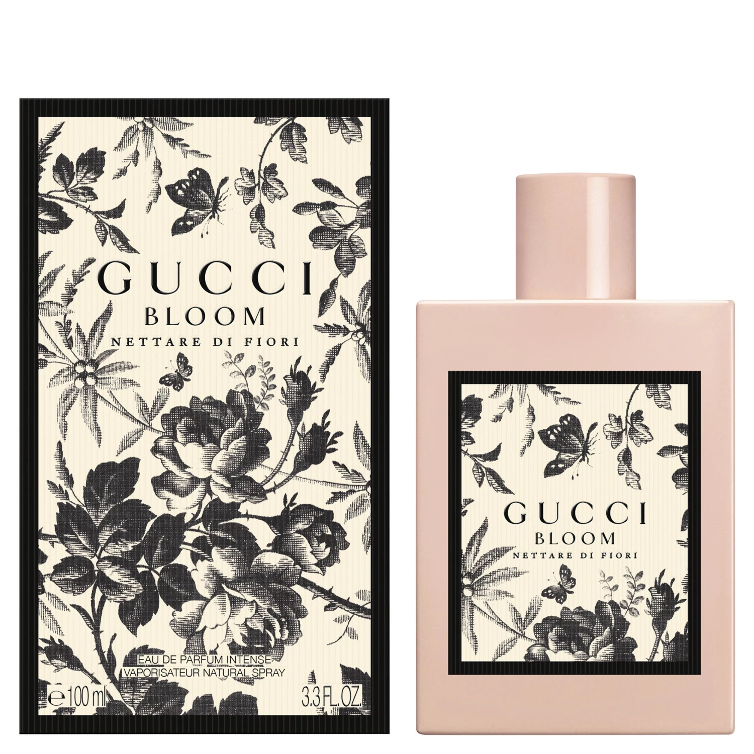 GUCCI NETTARE DI FIORI EAU DE PARFUM: Intense Nettare Di Fiori abre una nueva puerta en el mundo de Gucci Bloom. Desarrollada en una colaboración creativa con Alberto Morillas, la fragancia original (Gucci Bloom) adquiere más intensidad en una versión de Chypre con toques florales que captura el auténtico carácter femenino. El perfume de Gucci Bloom Nettare di Fiori transmite un profundo sentido de feminidad a través de su sensual mezcla amaderada con notas de salida de jengibre y rosas, y un final suave y enigmático con notas de fondo de pachulí, almizcle y osmanthus.