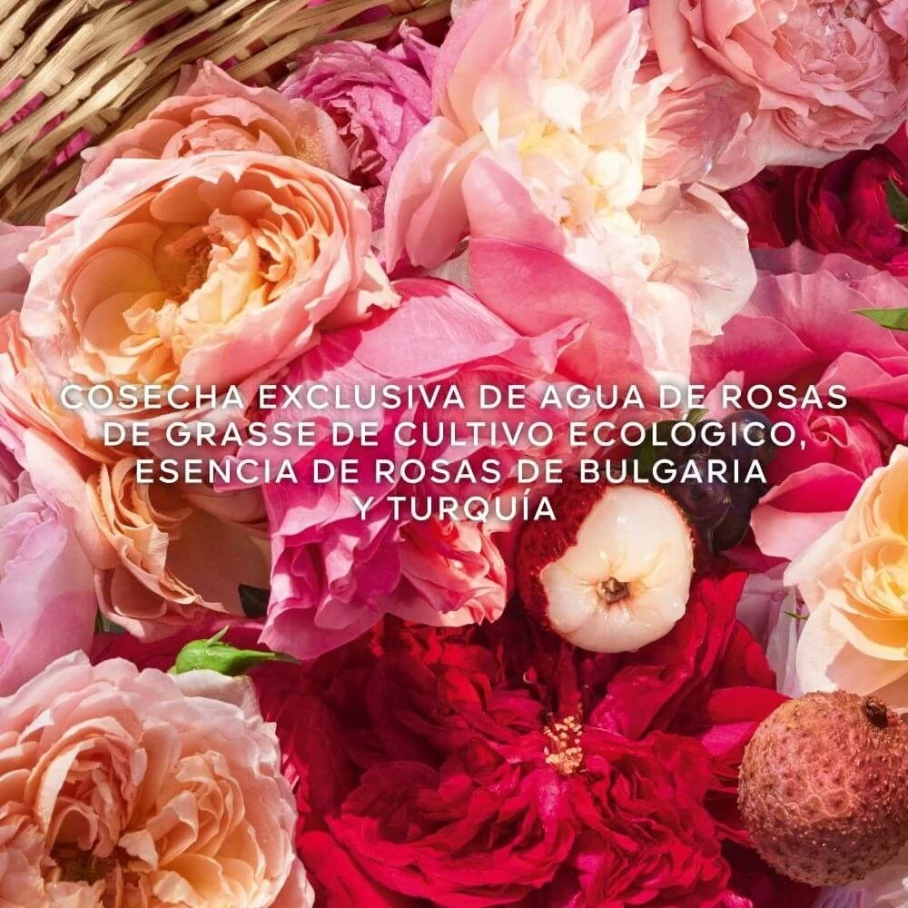 Las rosas de Bulgaria y Turquía de Rosa Rossa Harvest, delicadamente recogidas a mano, se funden con el frescor de un agua de rosas de cultivo ecológico de Grasse, realzadas por deliciosos acordes de lichi y grosella negra.