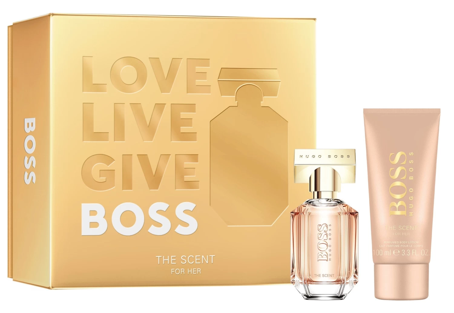 Estuche con el perfume de Hugo Boss The Scent for Her y otro/s producto/s con la misma fragancia.