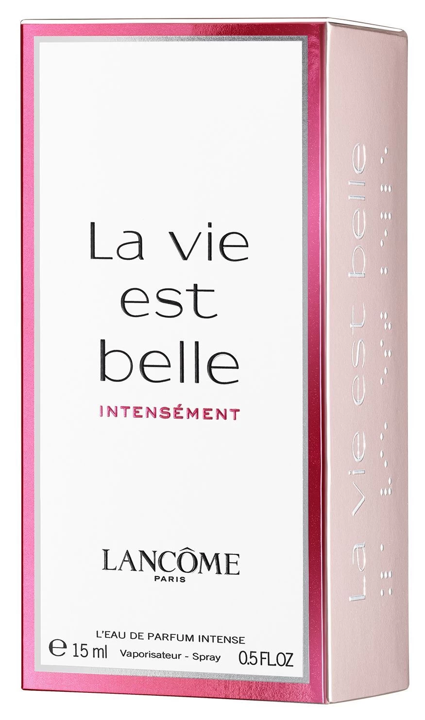 La historia olfativa La Vie est Belle Intensément está compuesta por un corazón poderoso y sensual (Iris Concrete, Vanilla Bean, Sambac Jasmine Absolute, Patchouli Heart) iluminado por una sonrisa de deliciosos manjares.