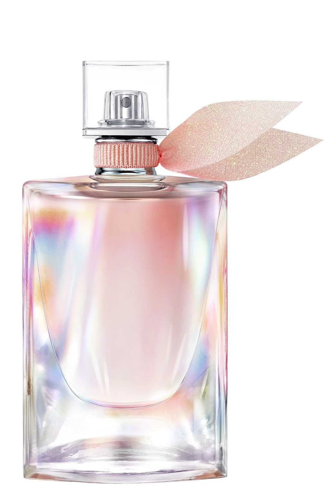 FRASCO: El frasco de perfume La Vie est Belle Soleil Cristal revela sus infinitas tonalidades holográficas, como un cristal que atraviesa la luz. Desde su cálido corazón dorado hasta la punta de sus alas iridiscentes, la luz irradia del frasco de perfume como un halo de felicidad.