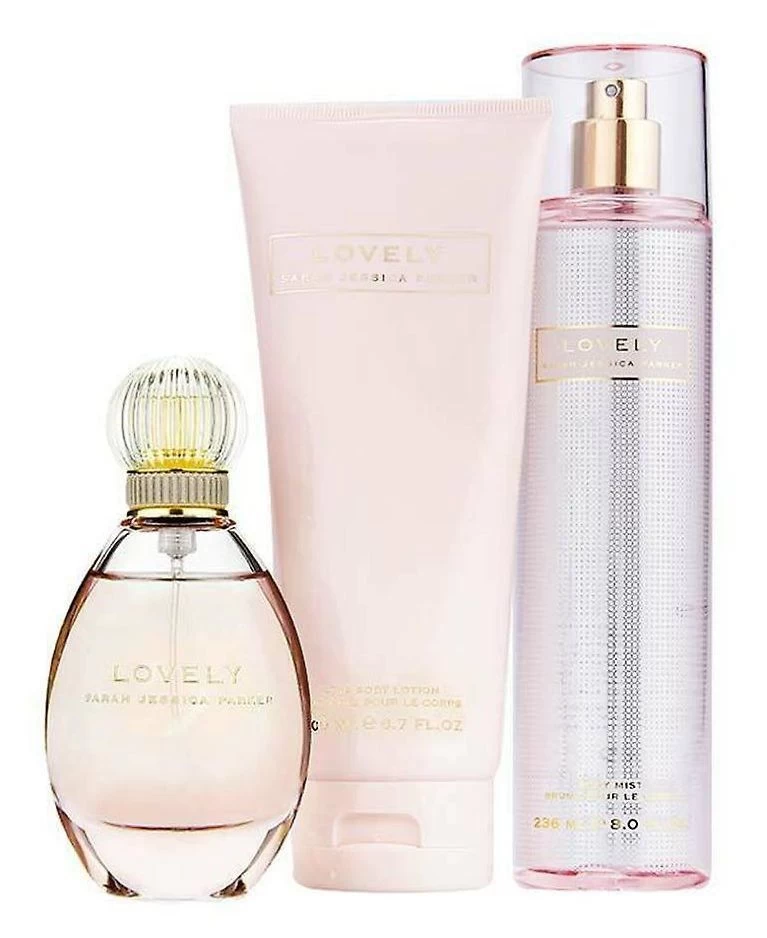 Lovely Set EDP de Sarah Jessica Parker: Es un fabuloso juego de regalo para la mujer que incluye la fragancia Lovely y una loción corporal Lovely con las mismas características que el perfume pero, con menos concentración. La fragancia es suave, íntima y un puro placer para los sentidos olfativos.
