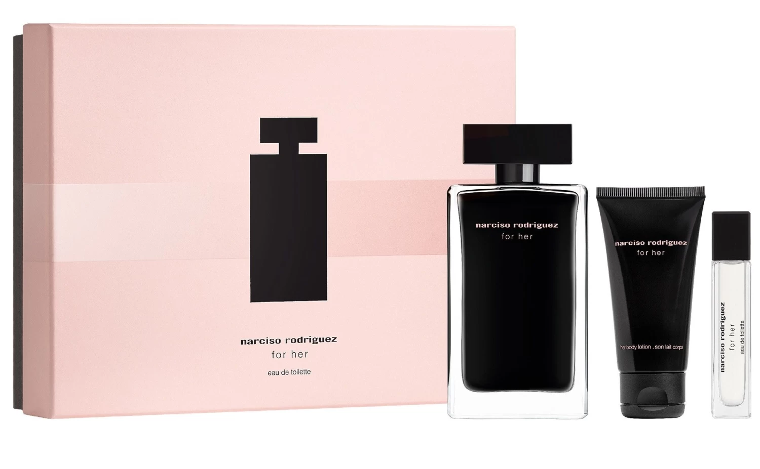 Narciso Rodríguez For Her EDT Estuche cautiva los sentidos de principio a fin.Un estuche de perfume de mujer femenino, cautivador y sensual que triunfa allá donde va por el aroma irrepetible de su icónica EDT que se potencia con otros productos de higiene y cuidado personal. Perfecto para regalar, el cofre incluye: