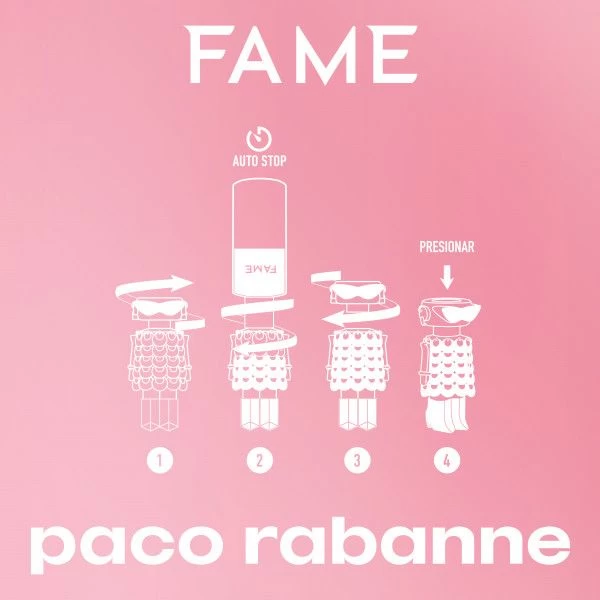 Este nuevo perfume femenino es irresistiblemente parisino y fabulosamente femenino. Su atrevido diseño, la quintaesencia del estilo vanguardista de Paco Rabanne, incorpora los códigos más emblemáticos de la marca. Tan preciada como una joya XL Link. Tan tentadora como el bolso 1969. Tan divertida como el vestido de cota de malla ultramoderno que han llevado tantos iconos. Además, Fame es más irresistible que nunca: Fame Blooming Pink se viste de rosa con purpurina brillante para atraer todas las miradas. Solo para iconos.