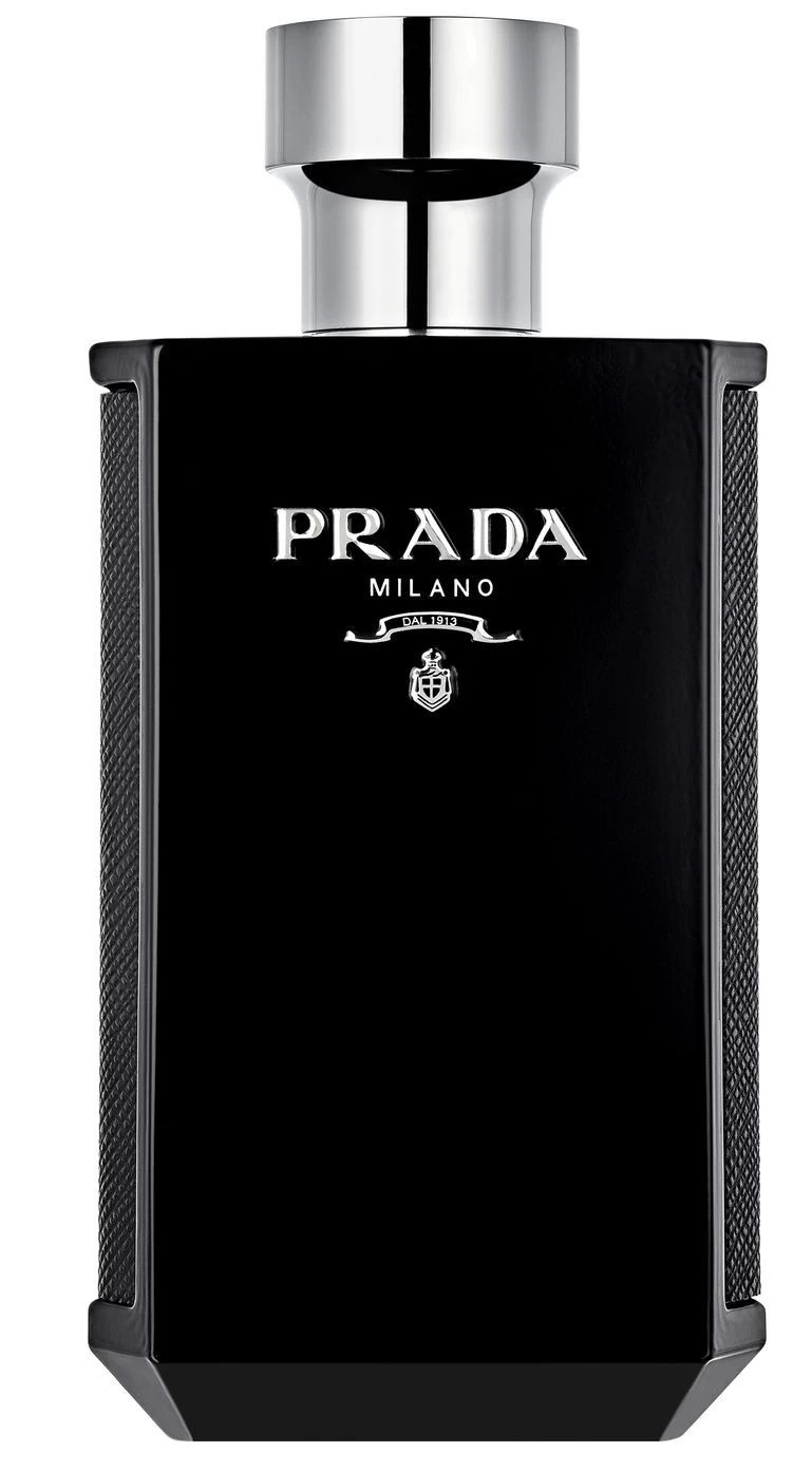 El frasco de L’HOMME INTENSE EDP está envuelto en el icónico Prada Saffiano negro. El logo original de Prada aparece en relieve en plata en la parte delantera del frasco lacado en negro.