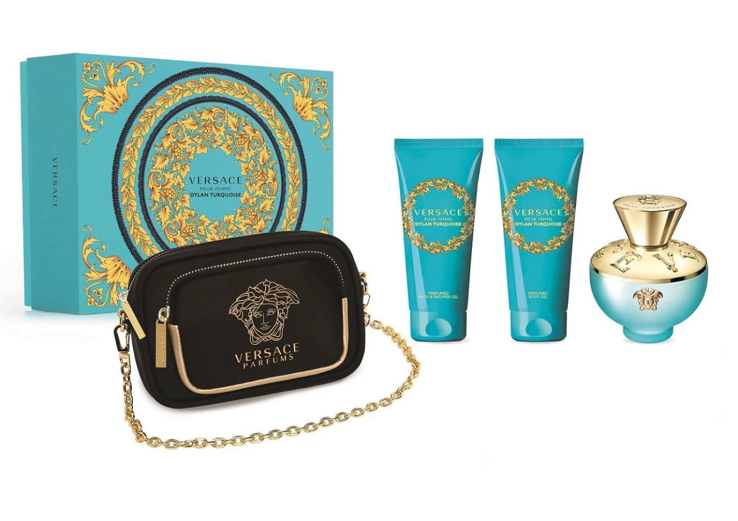 Inspirada en la sensualidad más icónica de Versace, Versace Dylan Turquoise EDT Estuche despierta los sentidos en un cofre inconfundible que es perfecto para regalar (y autoregalar). Enamórate de un aroma inconfundible que es sinónimo de tradición, innovación y feminidad.