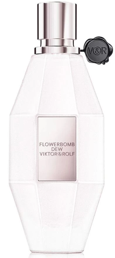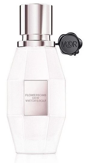 Flowerbomb Dew Eau de Parfum, una fragancia contenida en una botella de color blanco nacarado ligeramente transparente, la nueva joya en la familia Flowerbomb de Viktor & Rolf, que invita a las mujeres a deshacerse de todo lo innecesario, para revelar su poder.